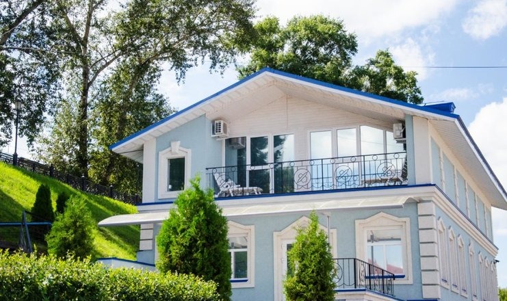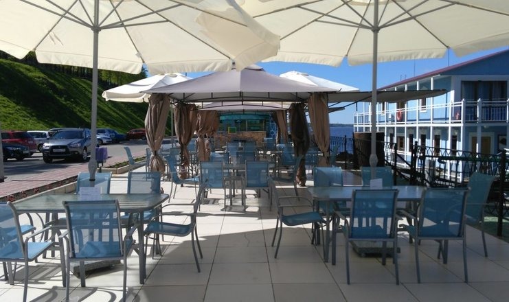 Комплекс занимает территорию площадью 1 гектар и состоит из основного двухэтажного здания дебаркадера, двух флигелей и трехэтажного особняка. Жилой фонд рассчитан на единовременное размещение 88 человек. Гостям предлагаются номера категории Стандарт, Полулюкс и апартаменты в дебаркадере, номера Люкс, Делюкс и Комфорт в особняке и Стандарт во флигелях. Все номера, выполненные в светлых оттенках, оснащены кондиционером, телевизор, санузлом с душем.