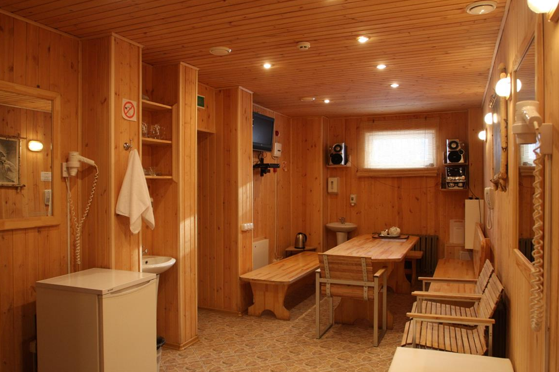 - Баня русская (Стоимость услуги составляет 5 000 рублей за 2 часа. Дополнительный час стоит 1 300 рублей.)