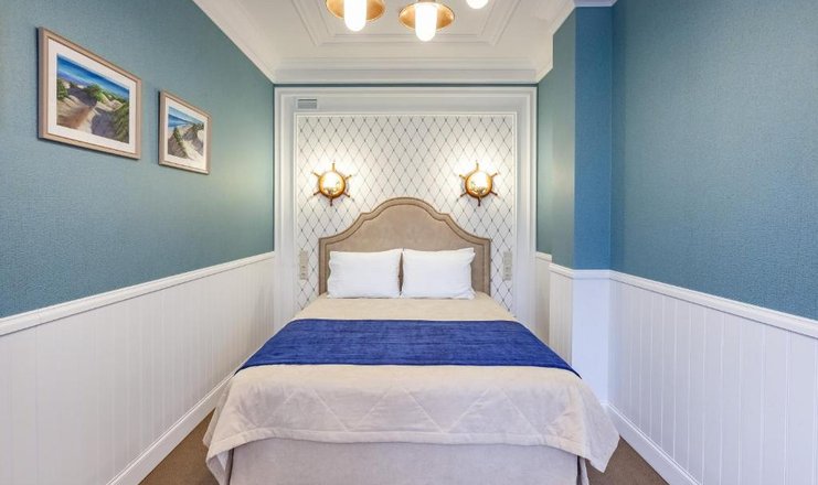 В номере: кровать полутораспальная, прикроватные тумбочки, стол, стулья, шкаф, кондиционер, мини-холодильник, сейф, телевизор ЖК, телефон, чайный набор посуды, электрочайник