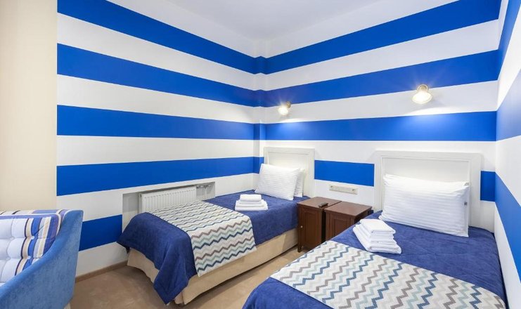 В номере: кровать двуспальная или две односпальные, прикроватные тумбочки, стол, стулья, шкаф, кондиционер, мини-холодильник, сейф, телевизор ЖК, телефон, чайный набор посуды, электрочайник